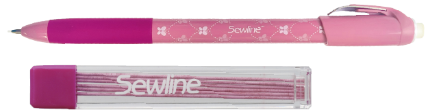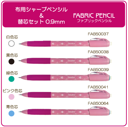 布用シャープペンシルは、専用に開発された0.9mmの特殊な芯なので、濃色・薄色の生地にもしるしをつけることができます。